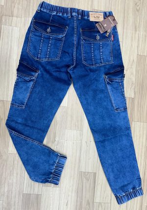 Dark Blue Denim Cargo with Six Pockets for Men, Size 38 to 40.